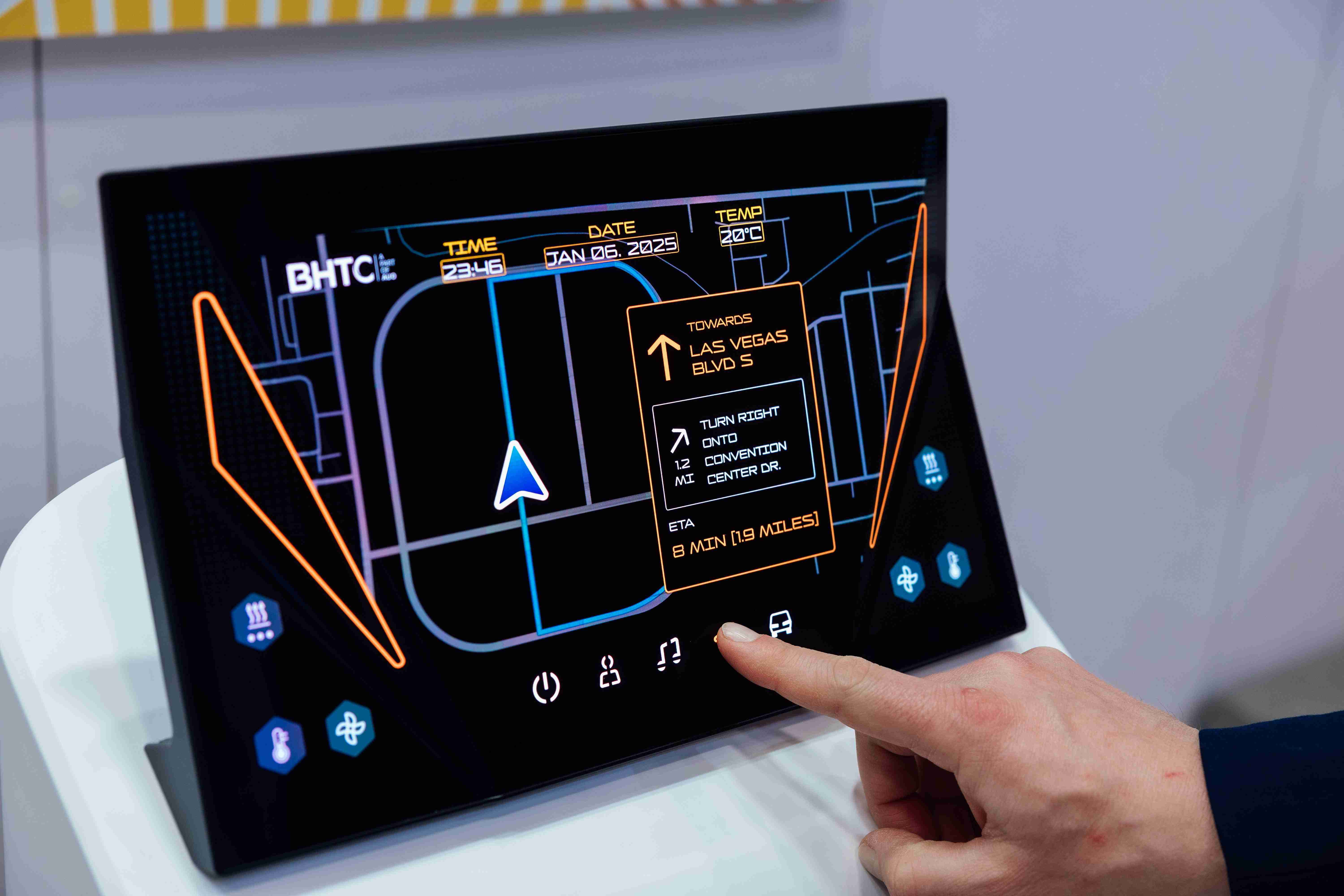 Micro LED可折迭触控显示器(Haptifold Display)结合BHTC多年HMI设计经验,,,整合中控台和温度控制功能,,,以优美的曲面和独特的外型助力车内设计美学,,在辅以触控回馈下,,为驾驶带来更直觉的使用体验。。。